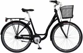 Kildemoes City Dame i moderne udgave med lav indstigning. Fastmonteret kurv, batteribaglygte, kædeskærm, bagagebærer, lås og justerbar frempind for optimal kørestilling.